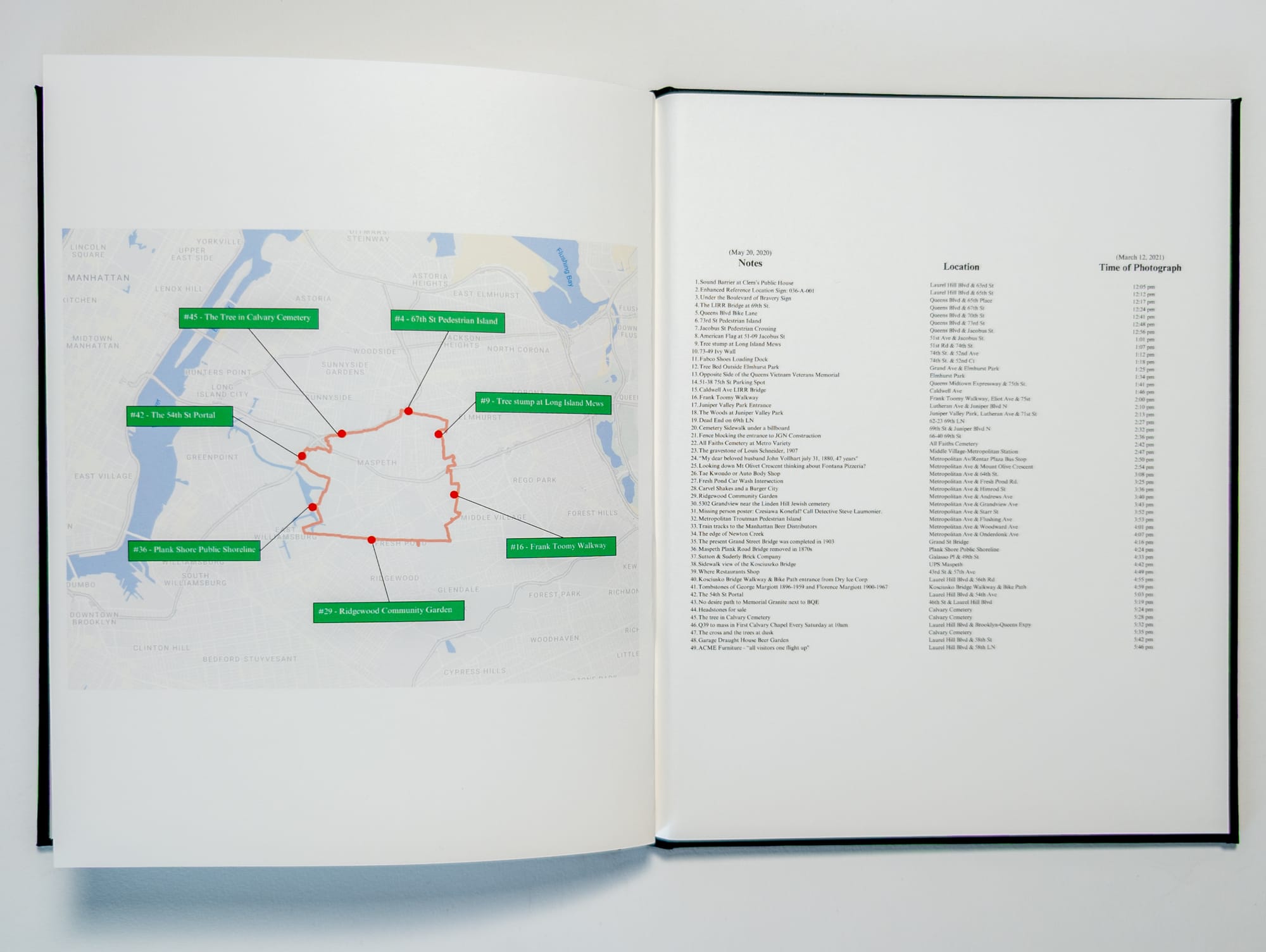 On May 20, 2020, I walked the perimeter of Maspeth, Queens, mapping 49 distinct locations. On March 12, 2021, I revisited each of these points, documenting them with both still photography and video.