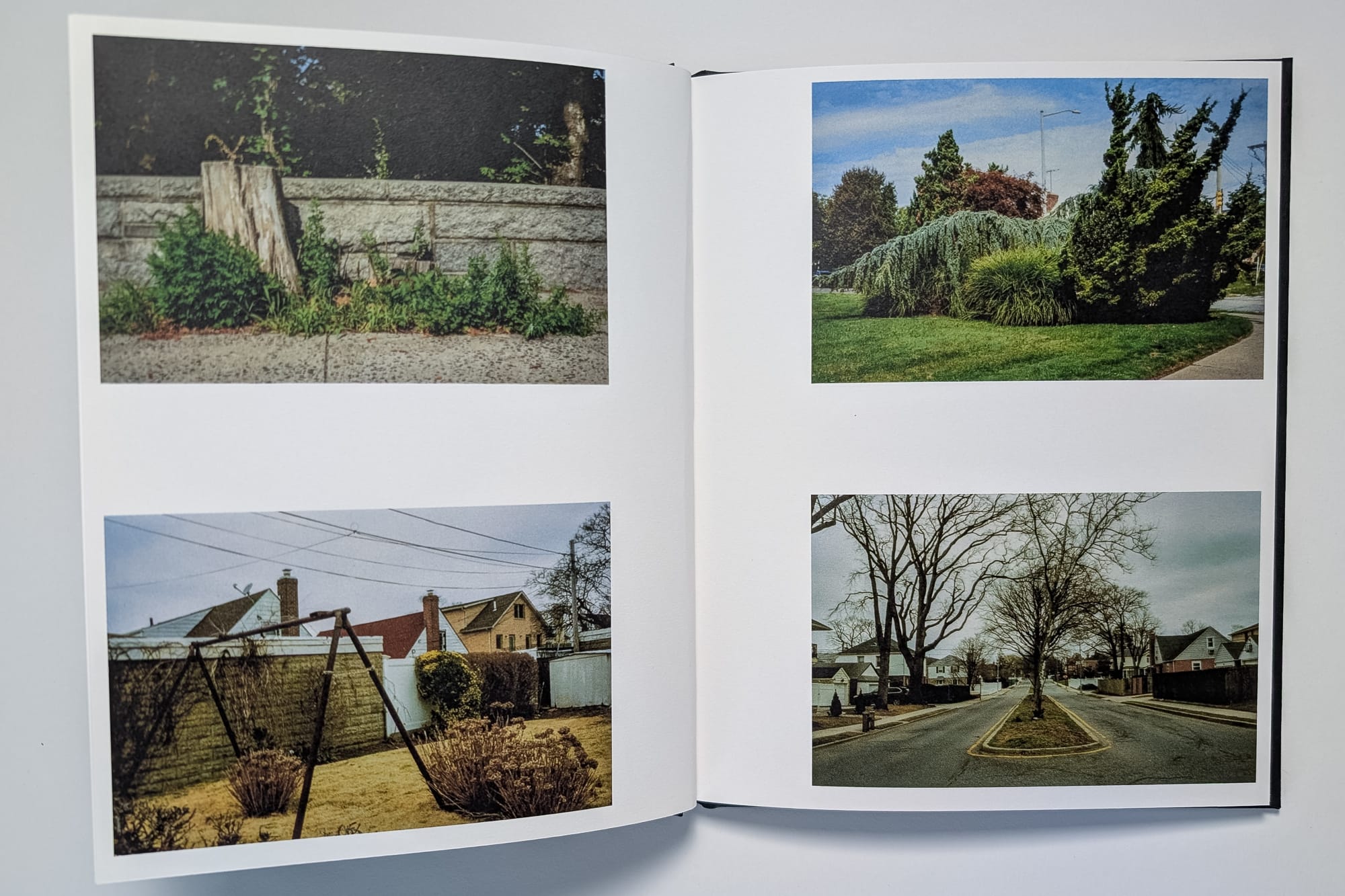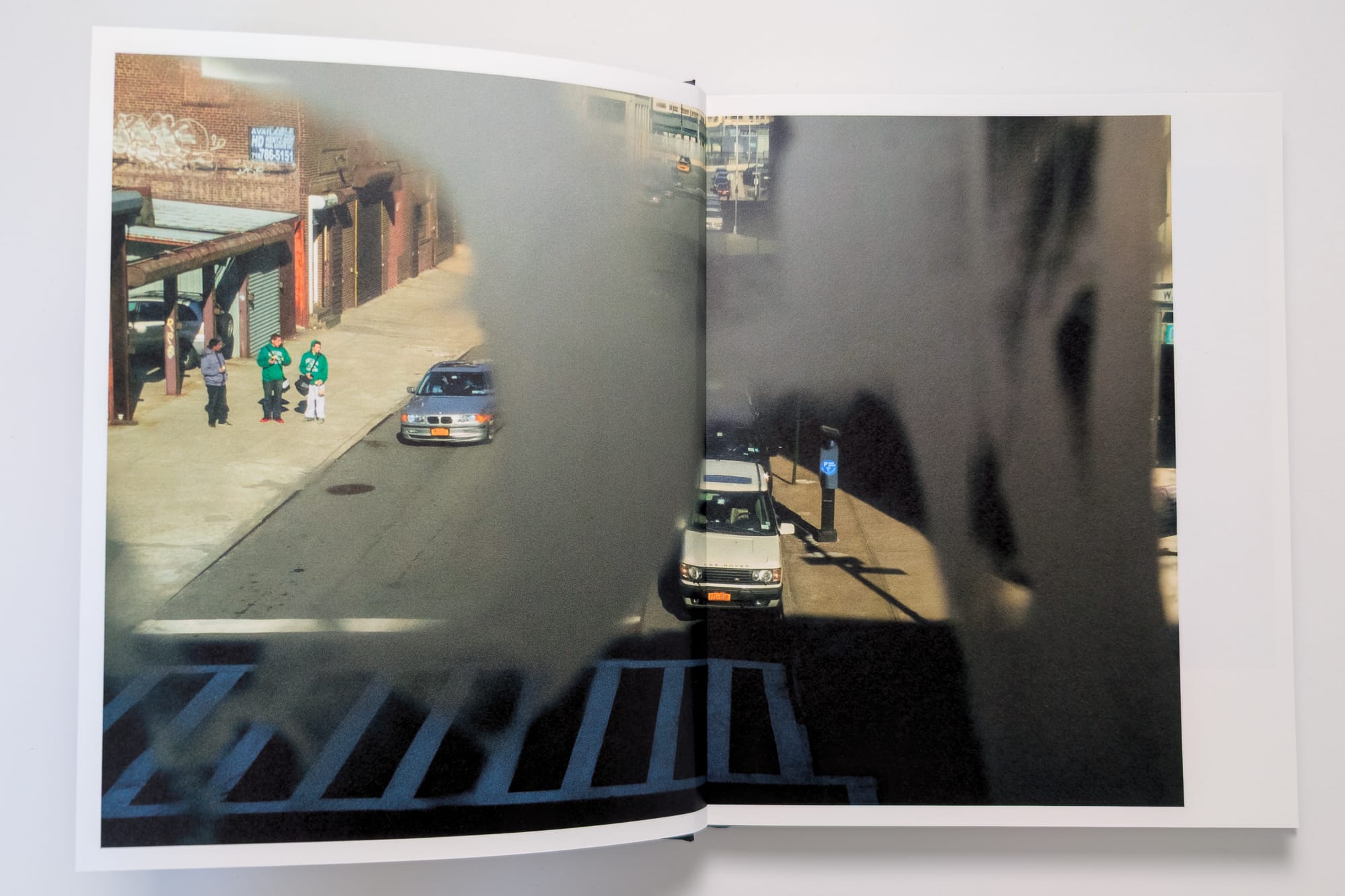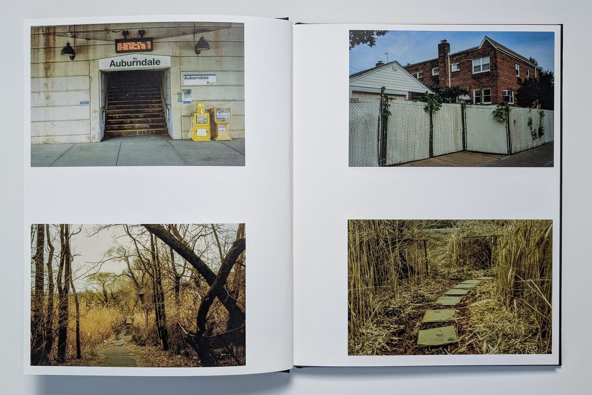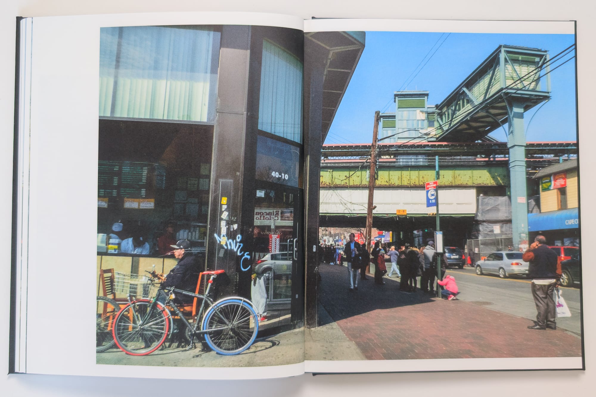 You can view all of the spreads and the rest of the text here: https://photography.bryanformhals.com/around-the-7-train-photobook/