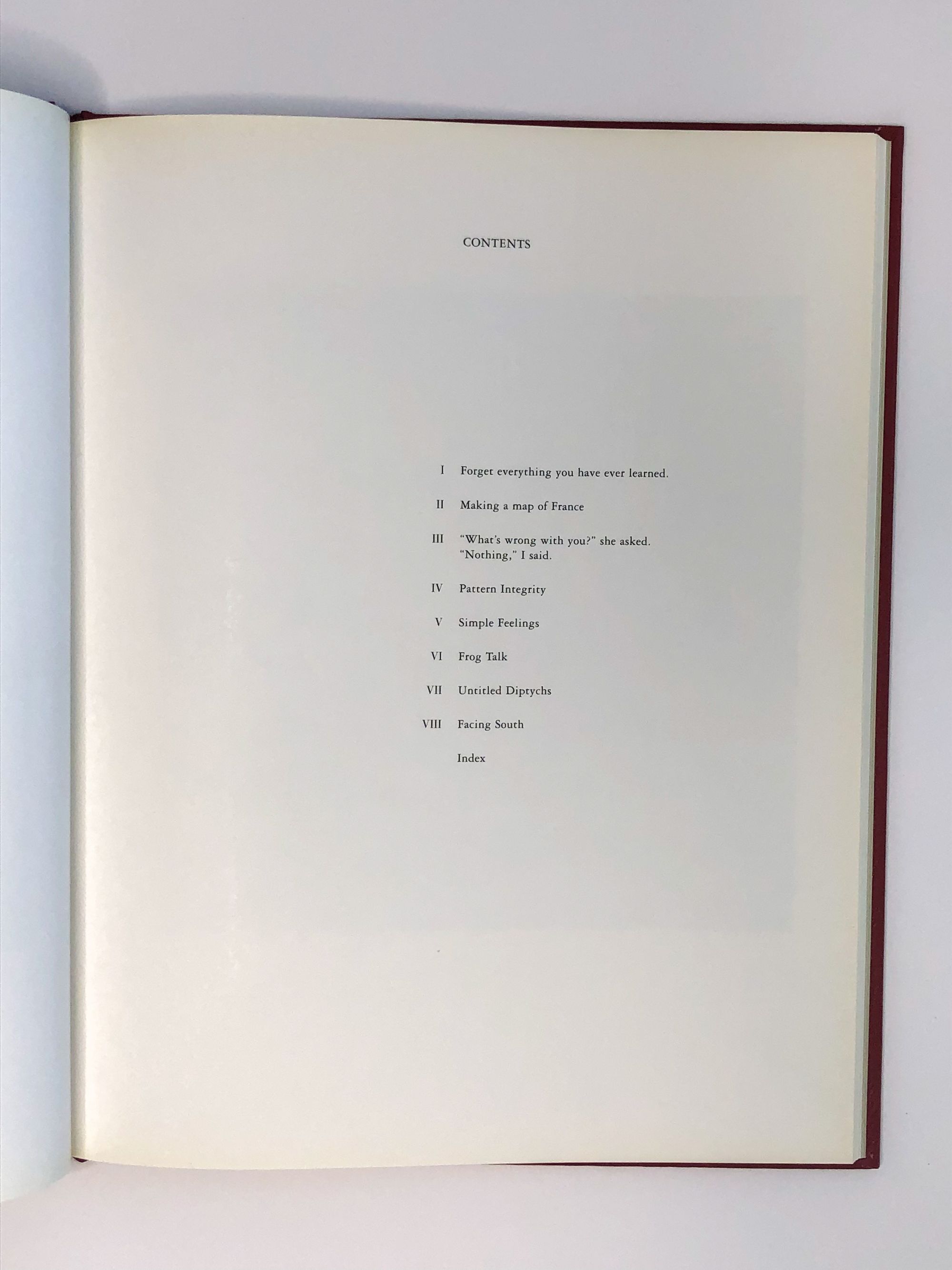 After you read the chapter index you are off to the races. Each chapter has a group of photographs that play off of each other, and vary in their placement on the pages. There are no captions and no text other than the number of the chapter.