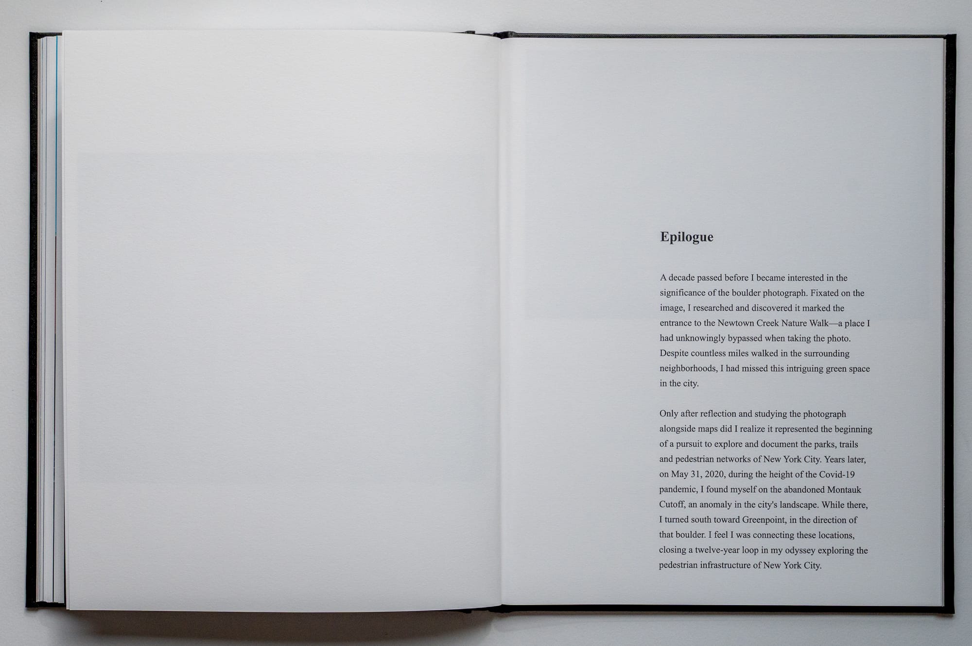 This book is not the beginning of NYC Public Strata in intention. It is the point at which the direction of the work becomes legible in retrospect. The boulder appears at the end, but it signals what follows.